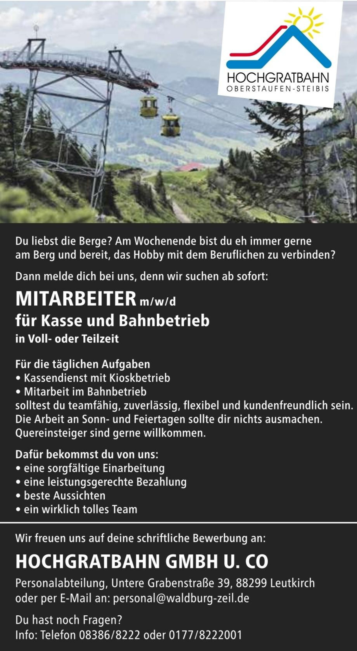 Du kannst uns auch gerne eine E-Mail schreiben an: info@hochgrat.de
